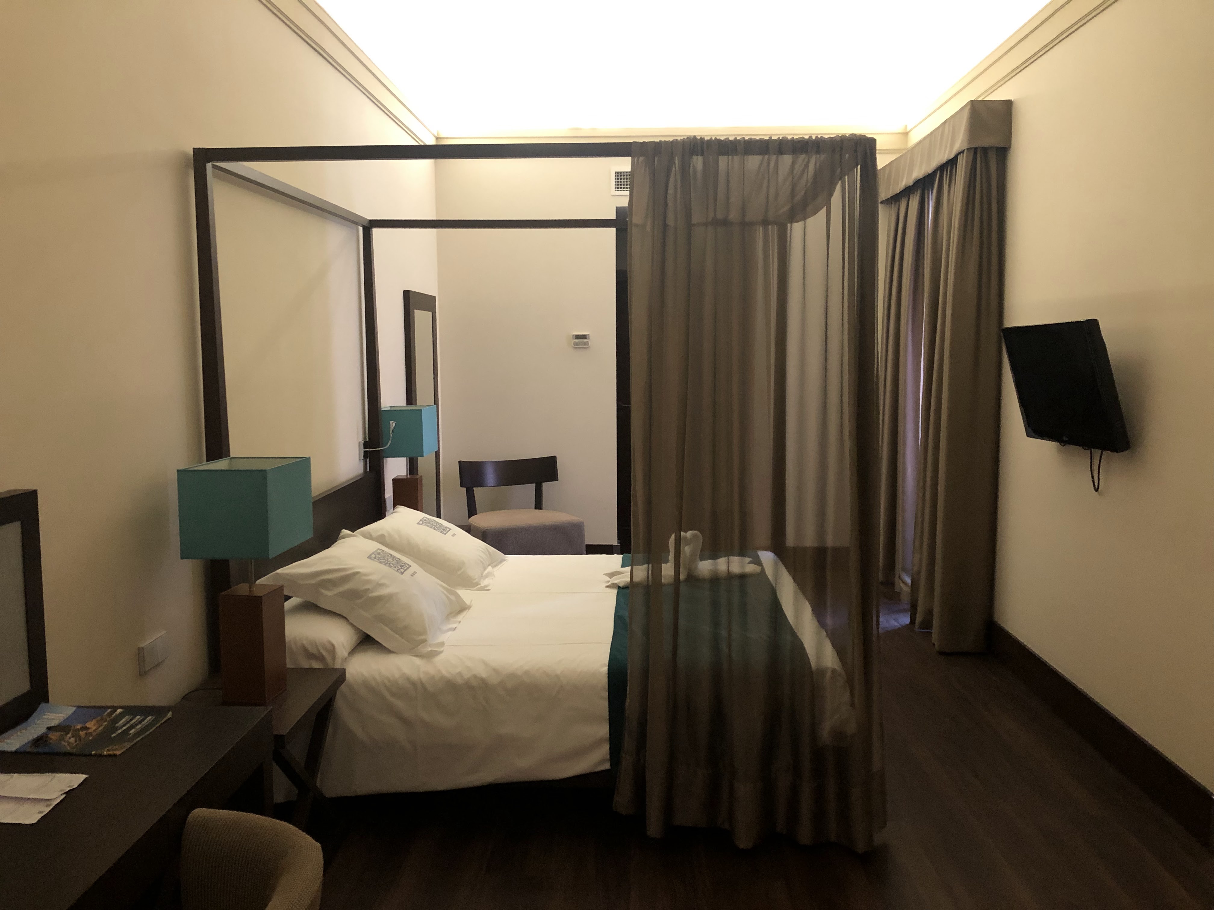 Desde luego, por todo lo visto y disfrutado es, por no decir el mejor, uno de los mejores hoteles de Segorbe. Su ubicación no es la mejor, aunque está muy cerca del casco histórico, y el hecho de tener una funeraria justo enfrente del mismo hotel le resta mucha alegría. Sus habitaciones son grandes, limpias y de techos altos. El claustro acristalado alberga por las mañana el buffet para el desayuno y en uno de los laterales se ubica el restaurante María de Luna, sin duda uno de los mejores restaurantes de la localidad, con una variada carta, un muy buen menú del día y una estupenda bodega. El spa es completito y tienes la posibilidad de reservarlo para uso privado durante 1 hora.