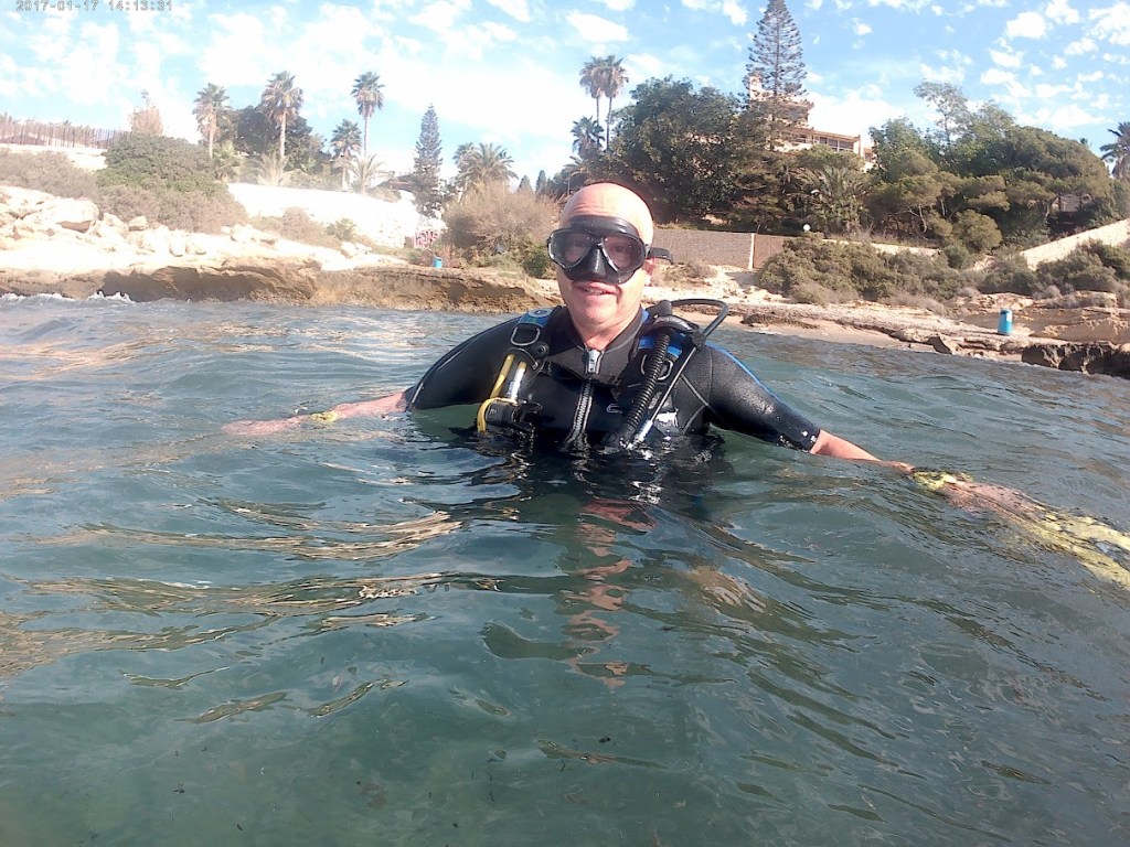 Nos dirigimos al punto de reunión en el Cabo Huertas de Alicante, muy cerquita del faro y de camino me entero que soy el único que va a tener bautismo de buceo por lo que voy a estar solo yo con mi instructor.