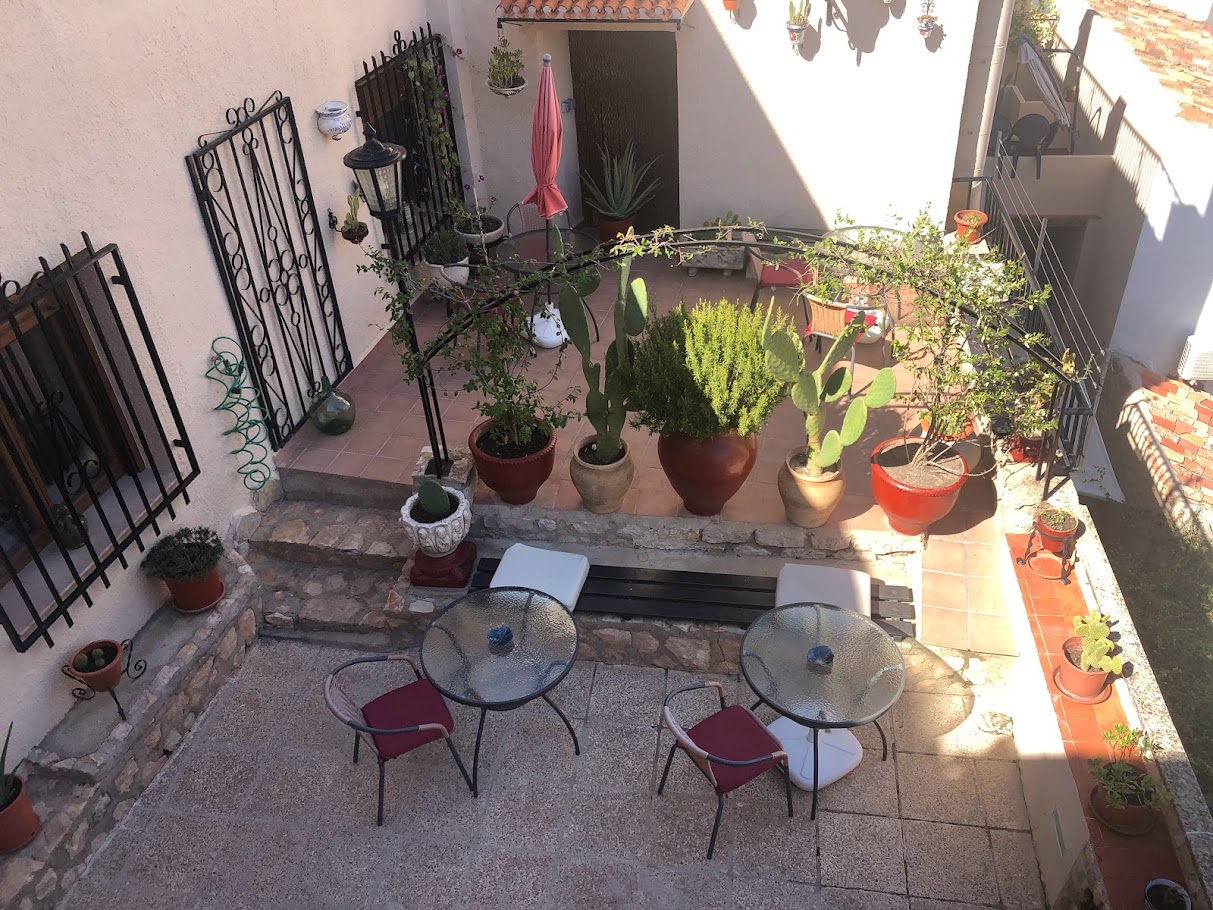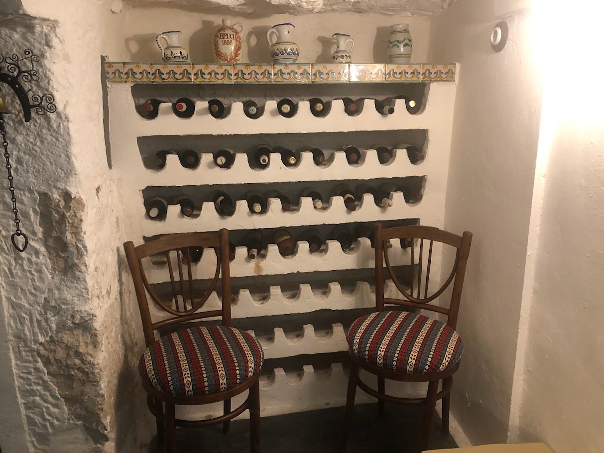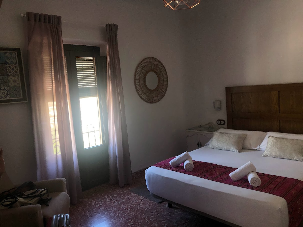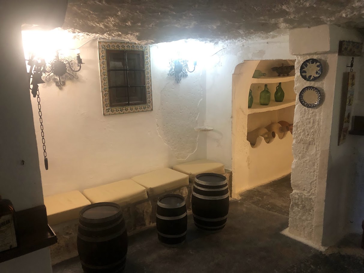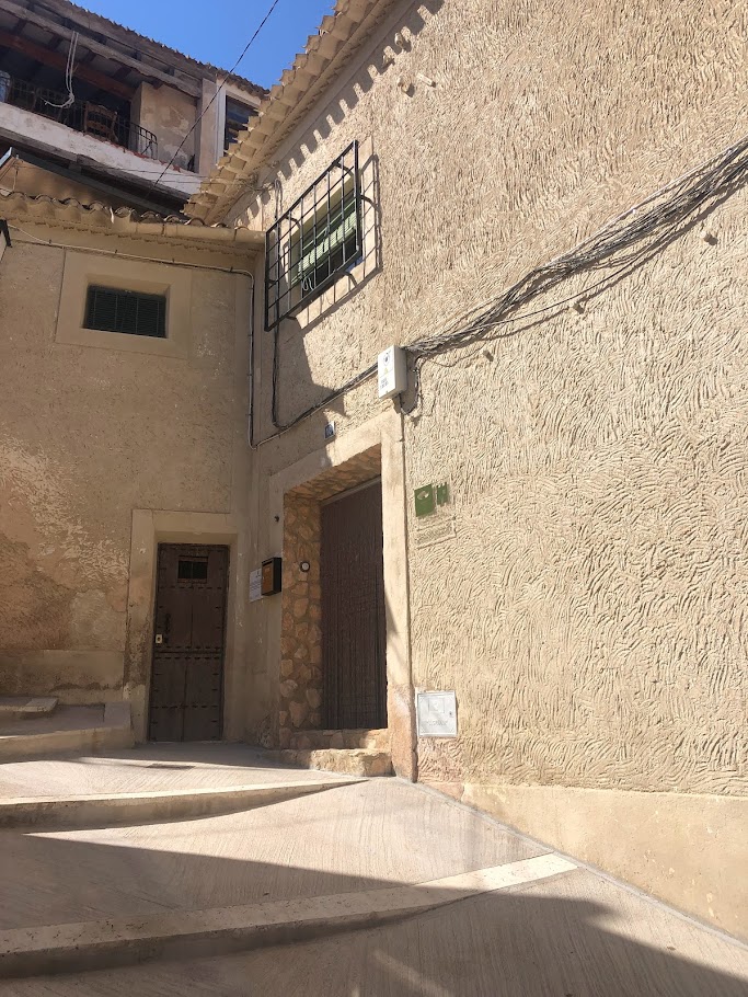 Ya comidos, volvimos al coche a por nuestras maletas y empezamos a subir cuestas y escalones, primero para llegar a la Iglesia de San Andrés, (solo visitable cuando hay acto religioso, jueves y domingo), seguidamente para llegar a la carnicería Hnos. Gil, (un embutido y unas carnes muy buenas), luego a la izquierda unos cuantos escalones más y por fin la puerta del hotel La Casa del Juez, (Hotel Rural Singular). Un pequeño hotel rural con pocas habitaciones, muy tranquilo, muy bien atendido por Axel que nos trató estupendamente y que conserva muchos elementos originales, (bodega, despensas excavadas en la roca, madera, etc.), a pesar de sus más de 100 años de antigüedad. Dos fallos le pondría yo al hotel, la poca accesibilidad tanto para llegar a él como una vez dentro del propio hotel y la simplicidad del desayuno.