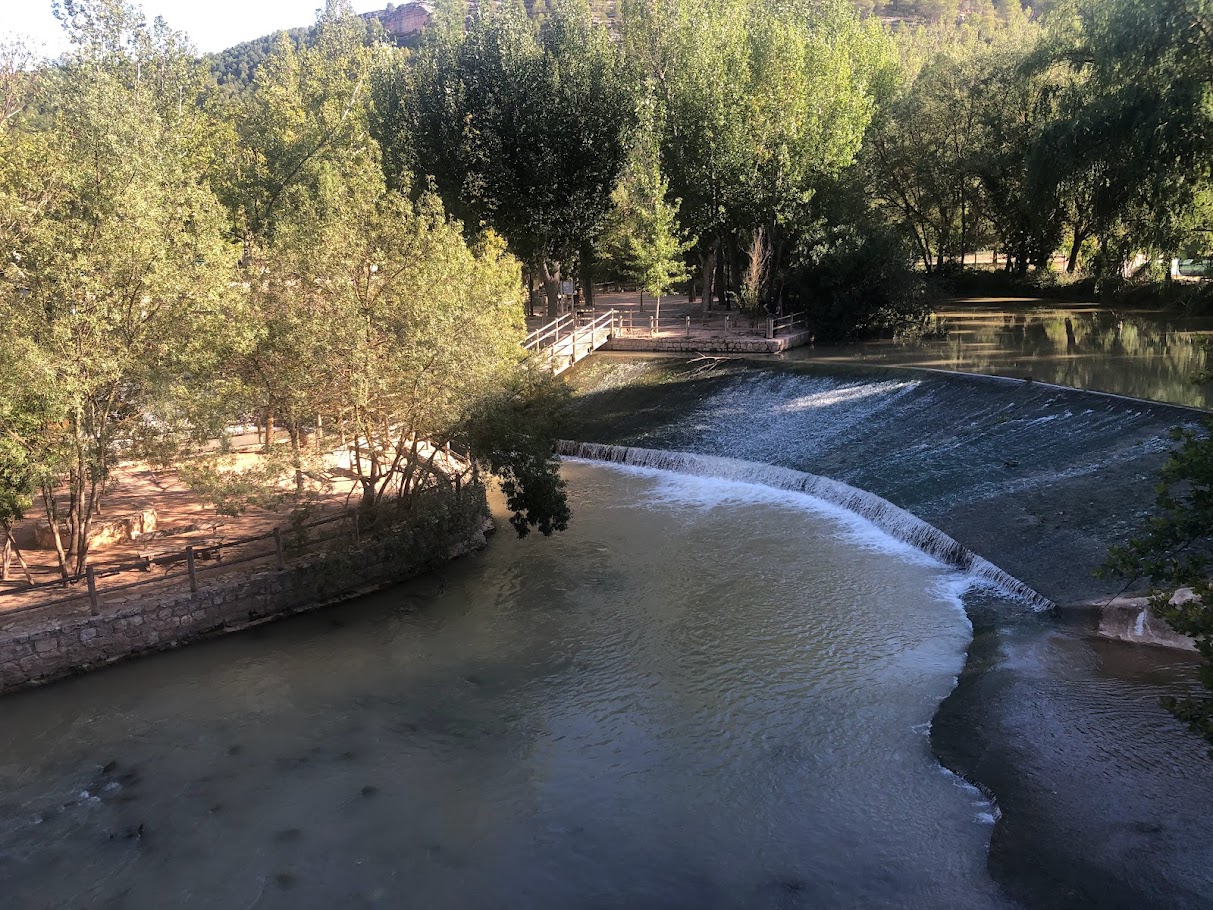 Durante el trayecto llamamos a un restaurante para reservar mesa para comer el cual estaba cerrado y nos derivaron a otro de su propiedad con vistas al río, concretamente al Restaurante Asador Vistasalrio. Sitio muy amplio, con una terraza grandísima junto al río Júcar pero que da la impresión de estar un tanto descuidado, con muchos camareros «paseando», (tal vez esperaban tener mayor afluencia de clientes un viernes a mediodía), y con una comida aceptable, (hemos probado gazpachos manchegos mucho mejores y mejor presentados).