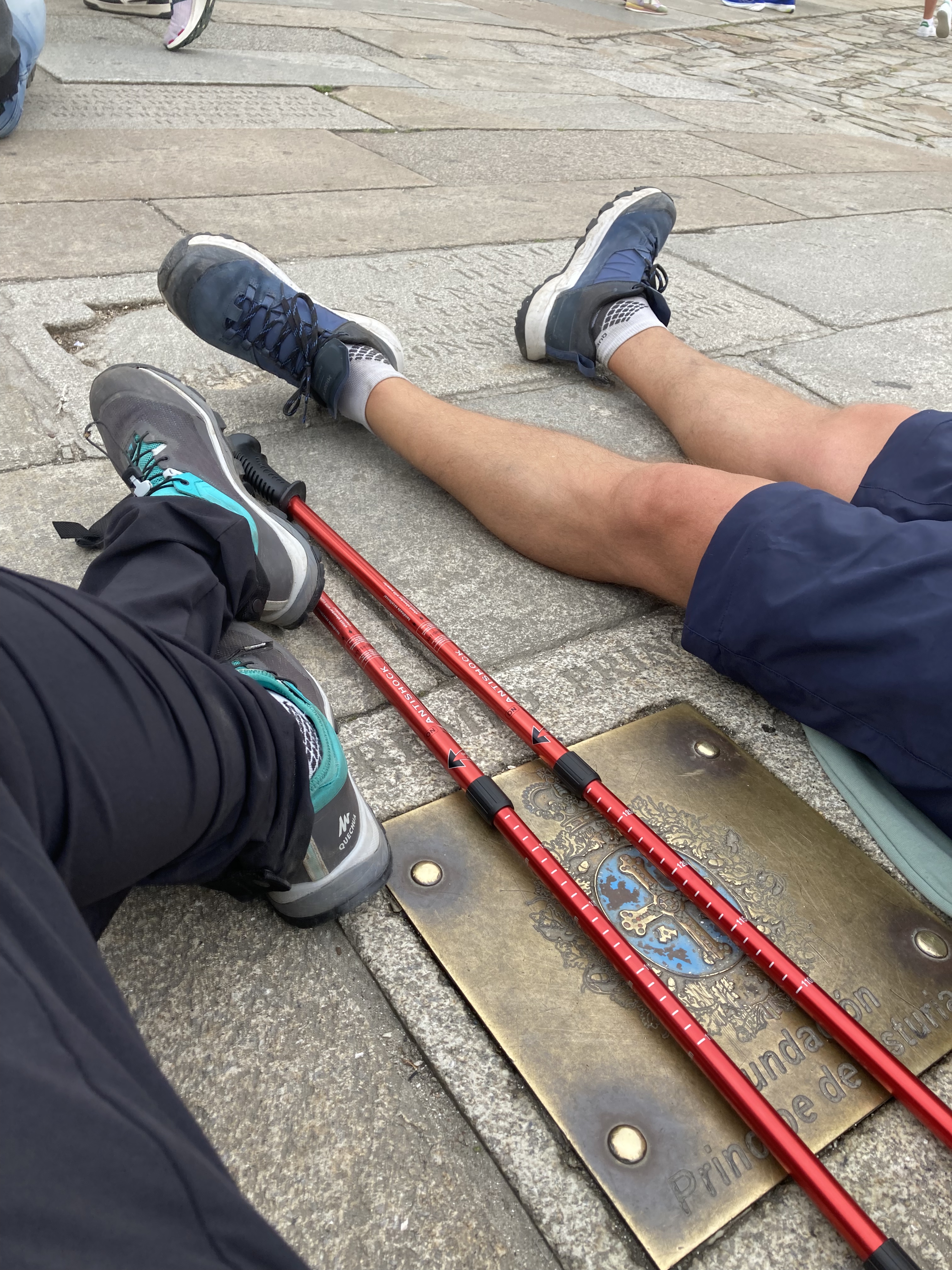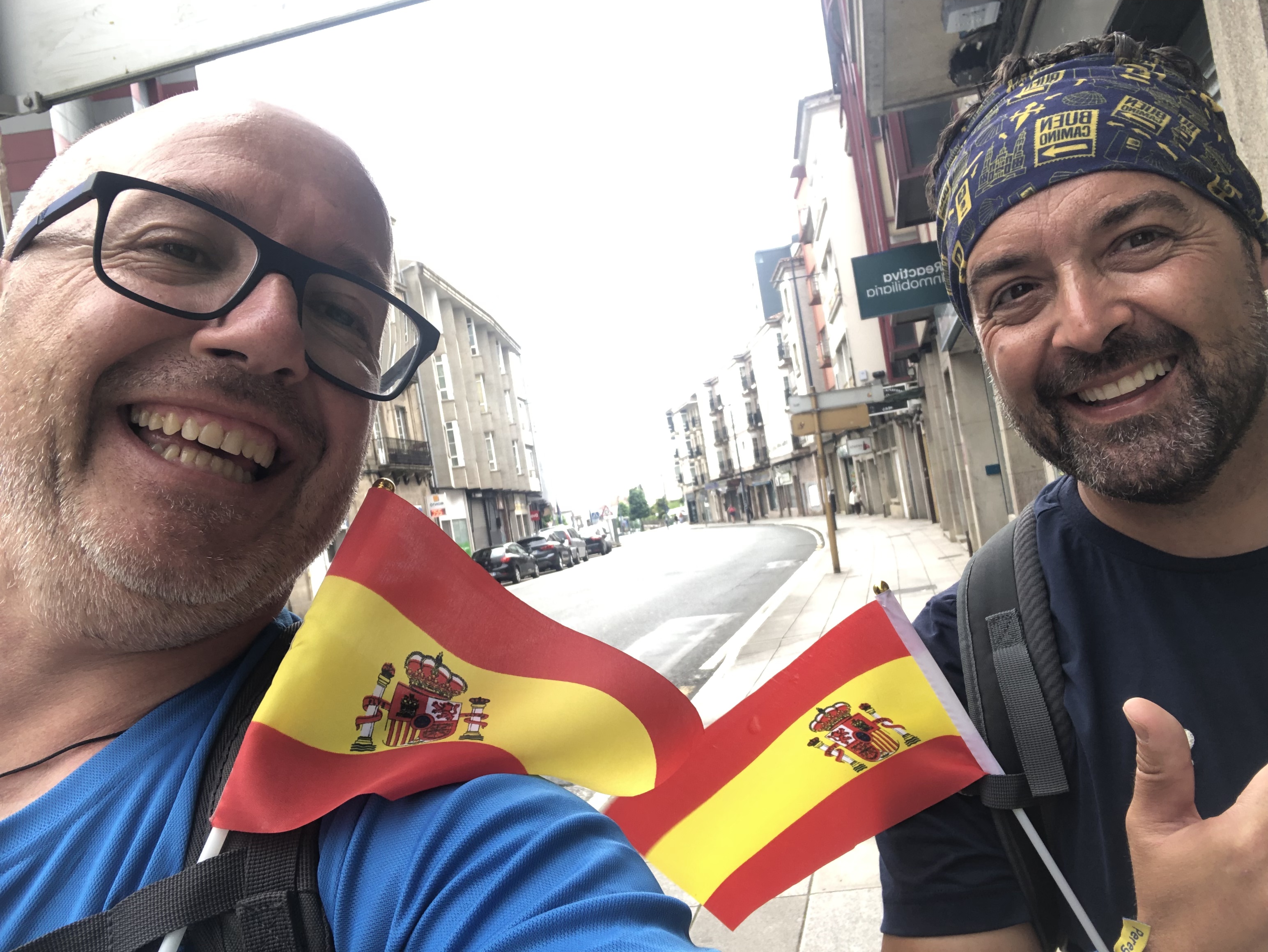 Al final eran casi las 8 de la mañana cuando dábamos inicio a nuestra última caminata entre muchas bromas y risas. Risas que a medida que los kilómetros se iban acumulando iban reduciéndose, (nunca terminándose). Tal y como teníamos acordado con el resto del grupo cada uno hacía su camino y si a unos les apetecía parar y a otro no les apetecía pues no se paraba, se continuaba con el camino y más adelante nos volveríamos a encontrar. Eso sí, debíamos entrar todos juntos a la Plaza del Obradoiro.