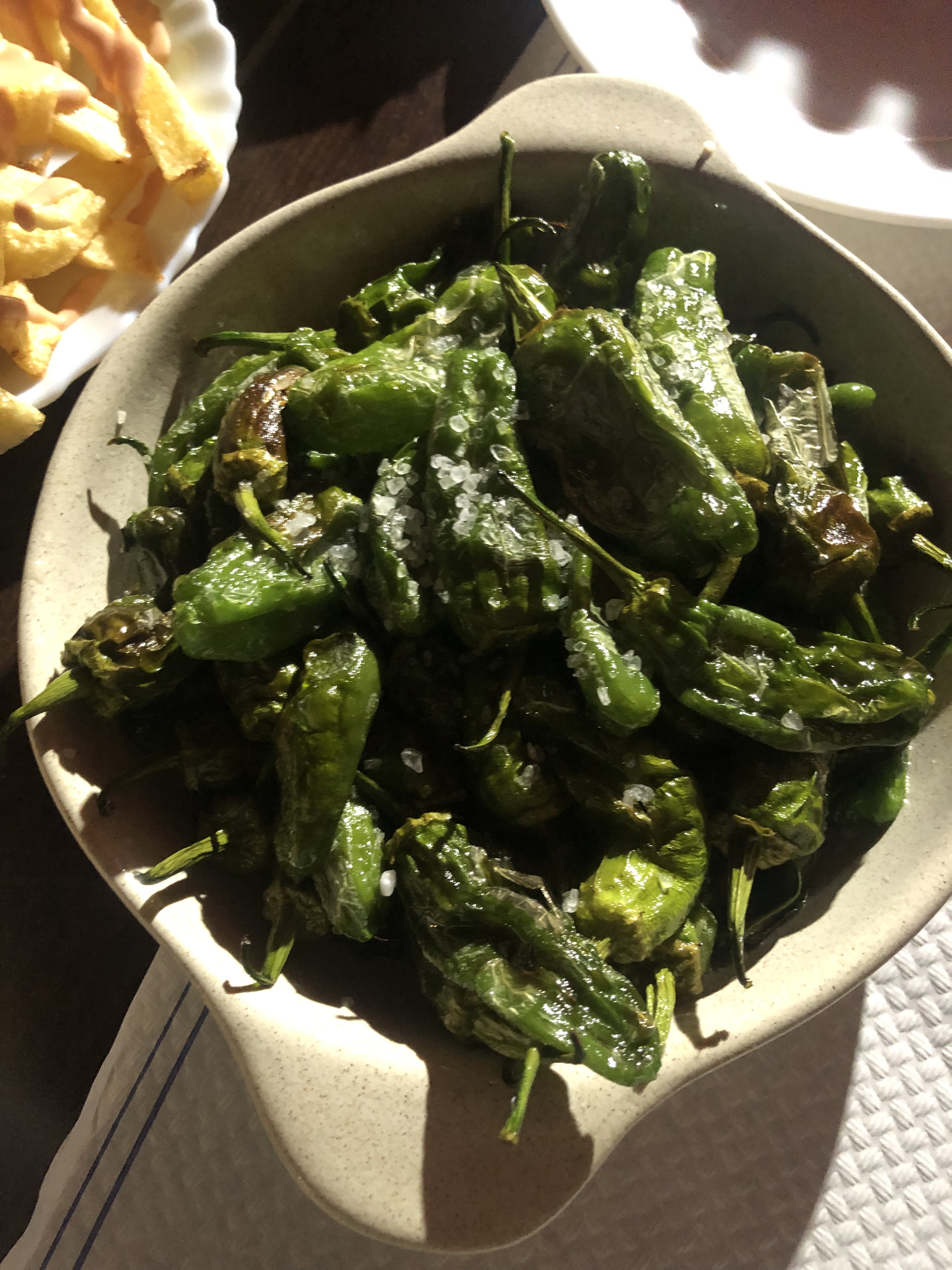 Una ducha, un poco de descanso y de tratamiento para nuestros pies y de nuevo en la plaza del pueblo para recorrerlo, conocer su historia, sus edificios, sus calles y también alguna que otra cerveza hasta la hora de cenar, cena que hicimos en en Bar Alfoli. Unas tapas, unos pimientos de Padrón como no podía ser de otra manera, (ningún pimiento picó), algo de Albariño y a dormir.