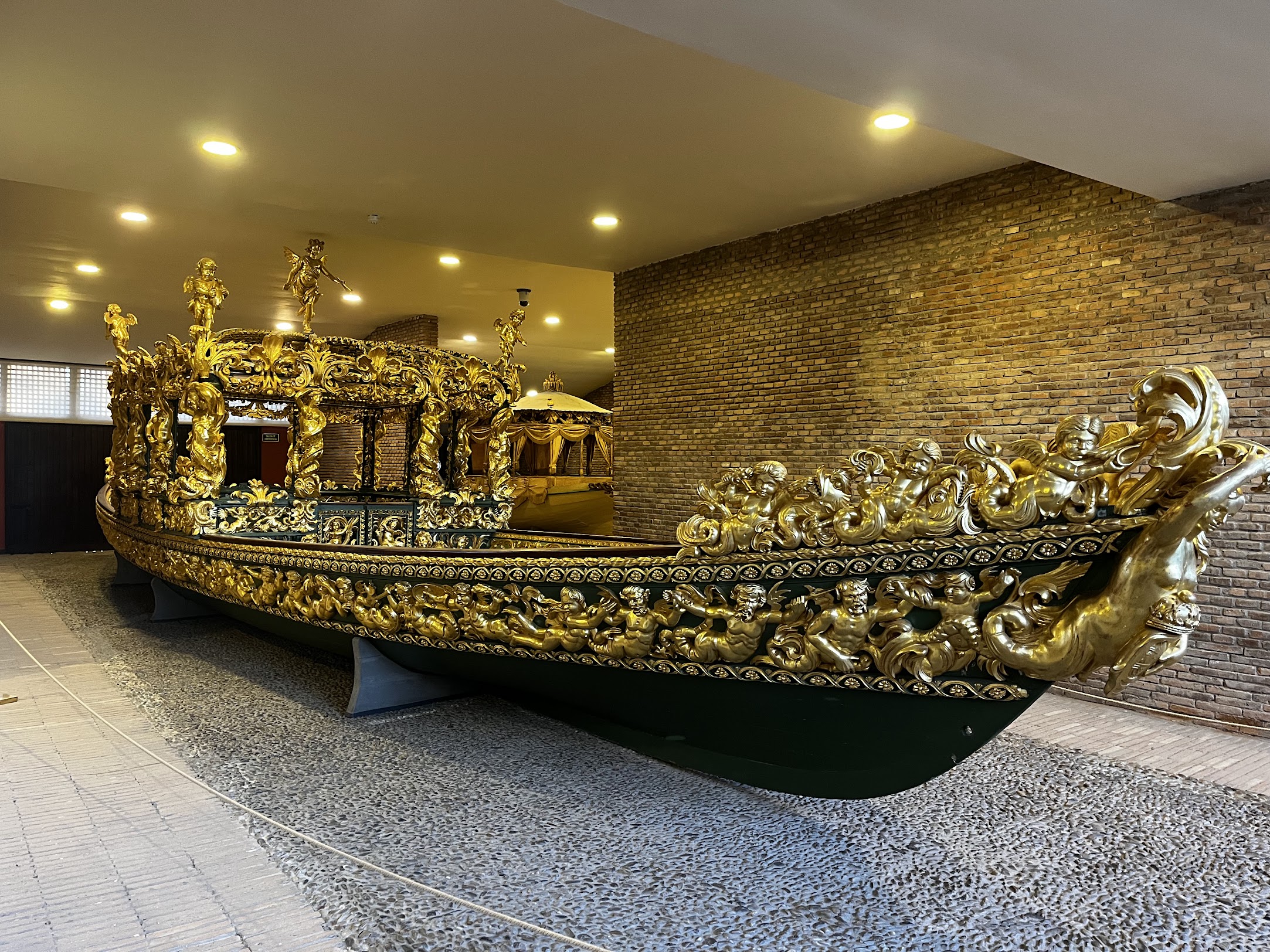 Después de la visita tocaba conocer el Museo de Falúas Reales. Tras un pequeño paseo por los jardines llegamos a un pequeño museo en el que pudimos contemplar una exposición de Falúas Reales o embarcaciones fluviales de recreo que en su día navegaron por el río Tajo, (río que prácticamente rodea el Palacio Real), y que deleitaron a príncipes, reyes, reinas y otros personajes de la época.