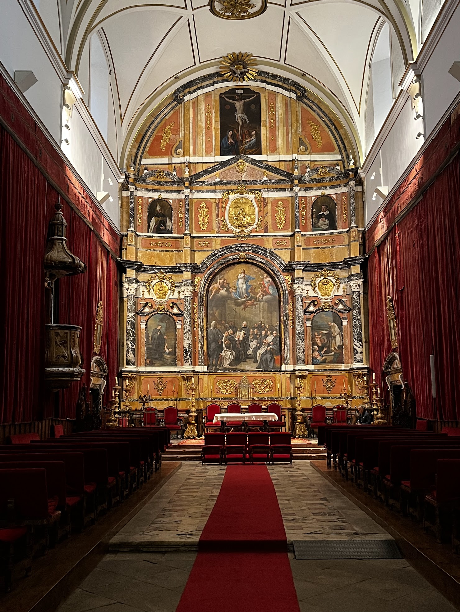 Lo que también nos impresionó fue la Sacristía, (también del XVII), y cuya altura de más de 30 metros nos dejó con la boca abierta, al igual que la monumental Iglesia en forma de cruz latina de una sola nave y alcanza una altura máxima de 44 metros. Tanto el colosal Retablo del altar mayor como los Retablos laterales, (de estilo barroco), son obra de José de Churriguera y de sus discípulos. Y ya para rematar no hay que dejar de ver el Coro del convento.