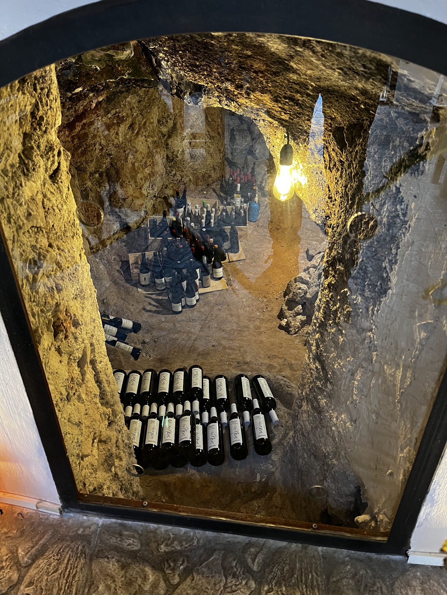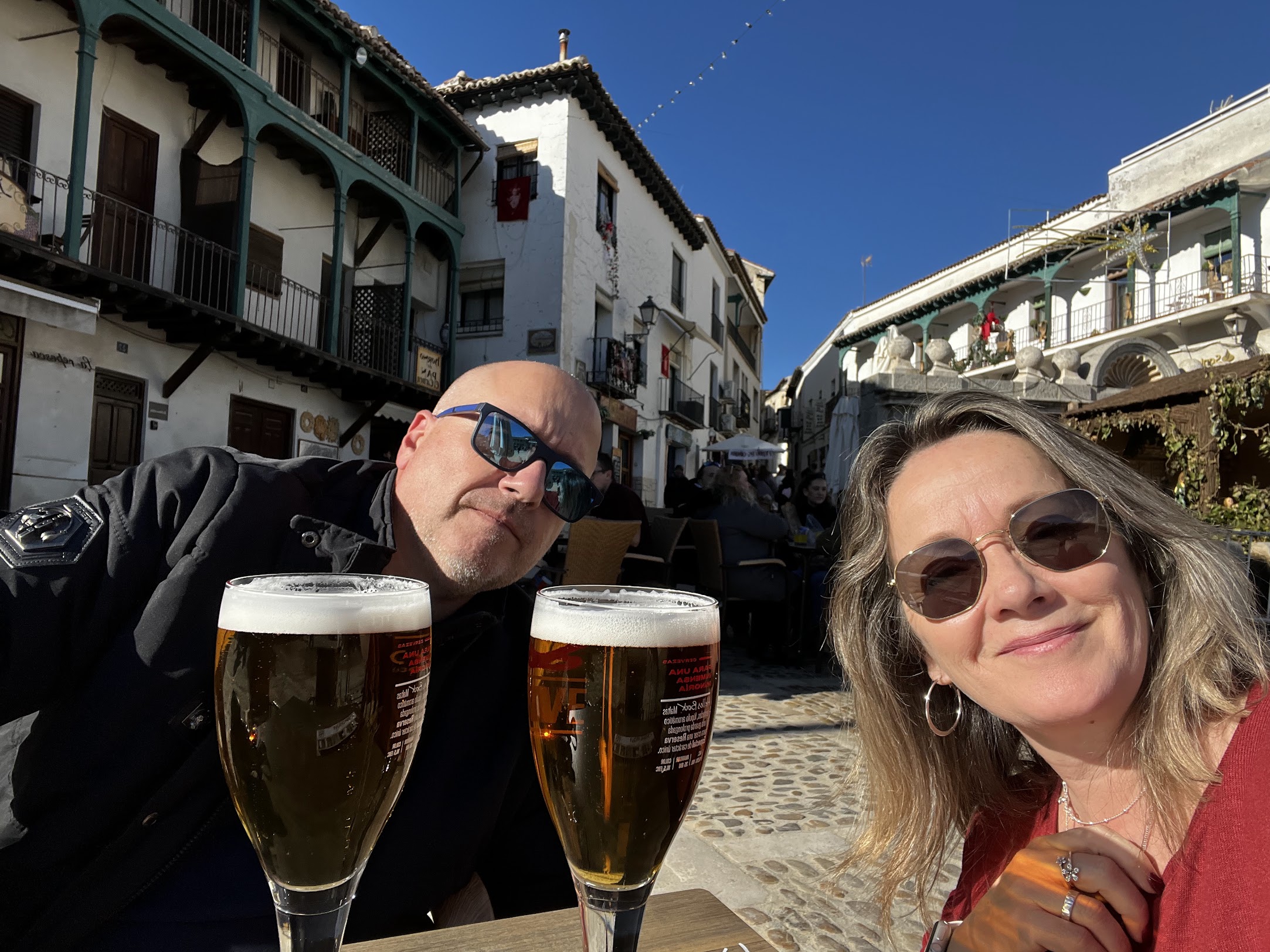 Tomamos una cerveza, (sin alcohol), en una de las muchas terrazas que llenan la Plaza Mayor después de visitar la Oficina de Turismo que también se ubica en la propia plaza. Para comer teníamos una reserva en el Restaurante La Señora Winebar de Chinchón. Un pequeño restaurante, (sin redes sociales y que lleva abierto un año y poquitos meses), que se ubica en una antigua casa y en el que se puede visitar la bodega de vinos excavada en la piedra en los bajos de la casa. Antes de comer tomamos un vino local y un refresco en el patio acristalado de la casa y después ya pasamos al comedor donde disfrutamos de unas buenísima setas, de unos espectaculares huevos al carbón y de una magnífica carne, y todo ellos a un precio muy muy bueno.