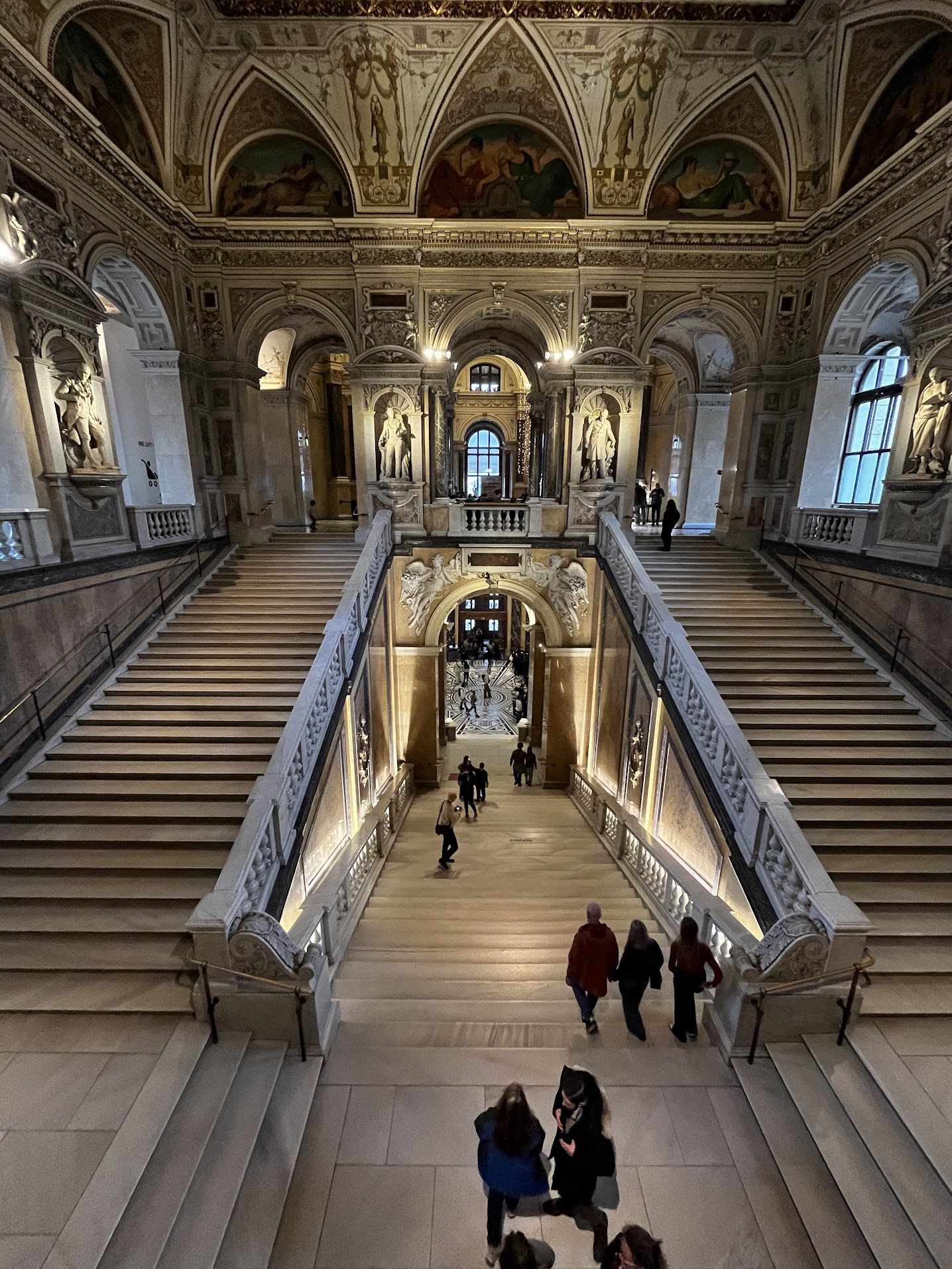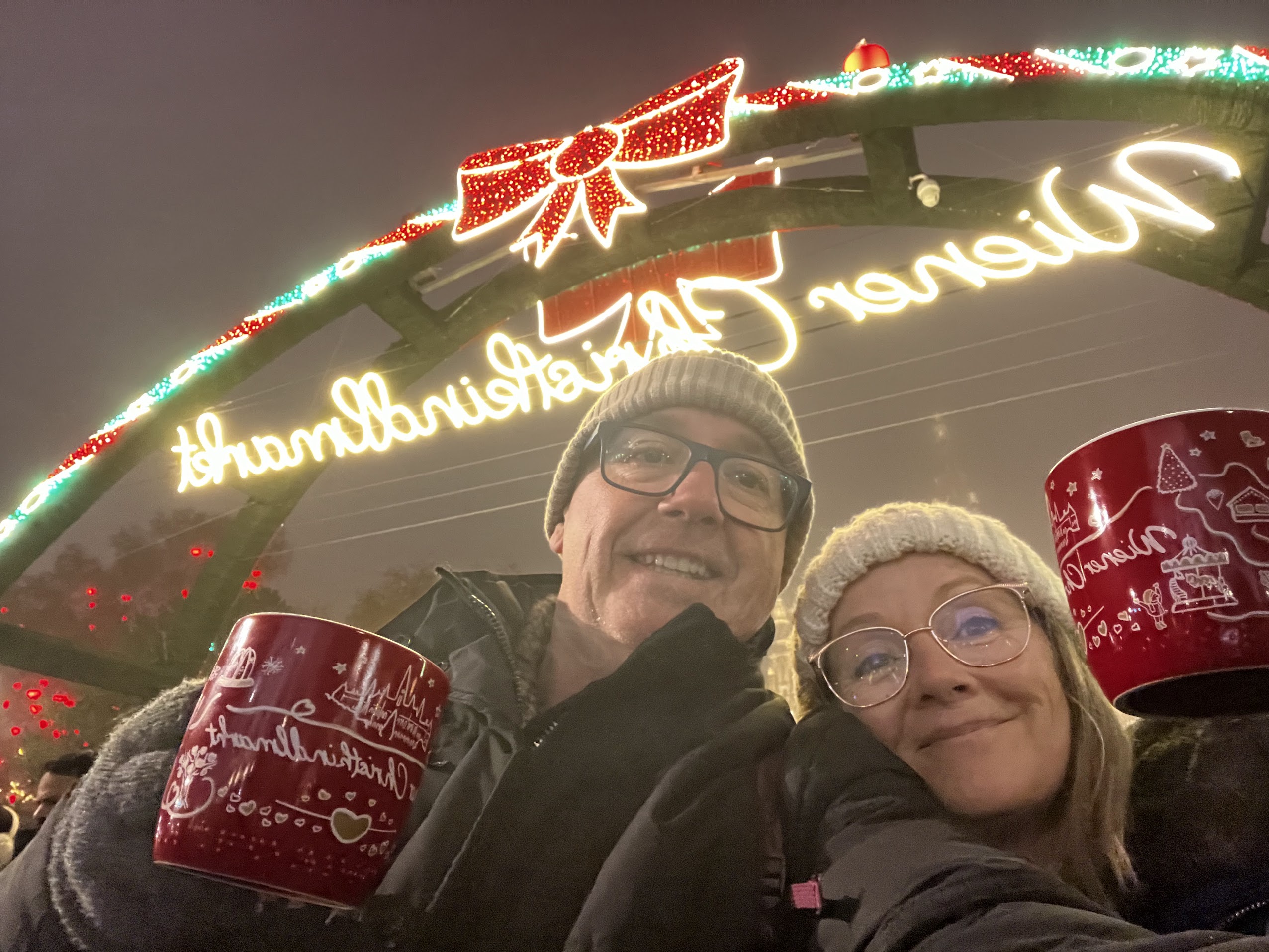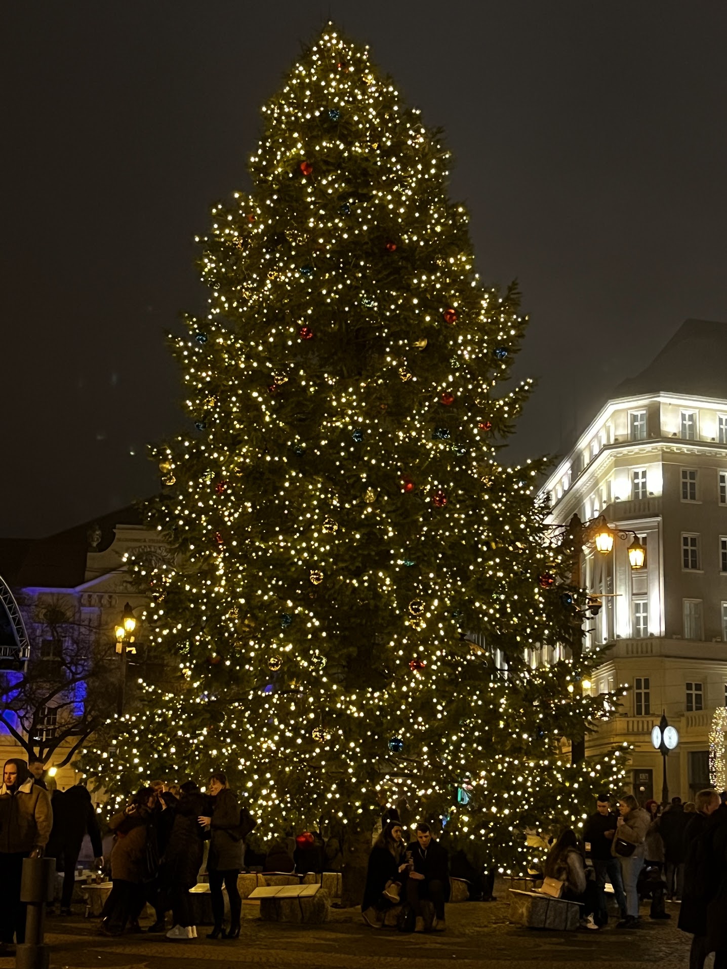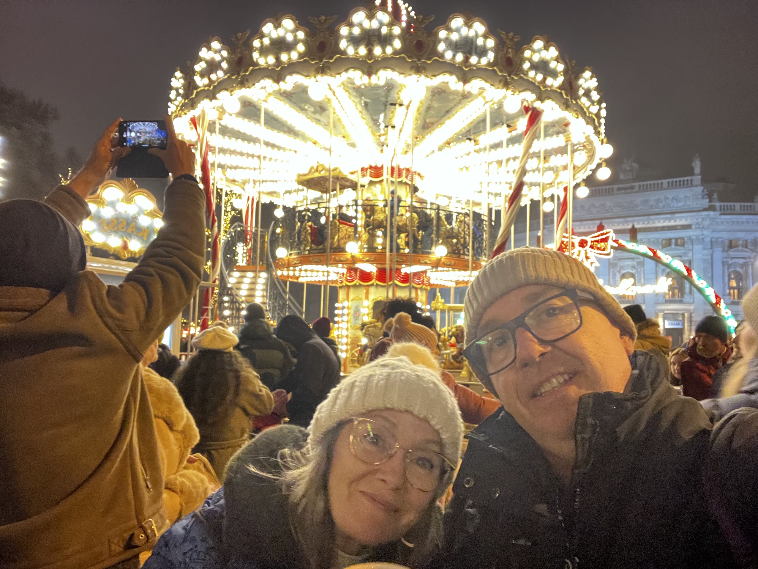Viernes y nos íbamos a Viena. Una escapada que, aunque solo era para un día, nos hacía especial ilusión. Desde Austria Turismo nos habían hecho llegar dos Viena Pass y esto nos incluía los autobuses turísticos de Viena, (las 5 líneas), con viajes ilimitados los que nos permitía subir y bajar cuantas veces quisiéramos en cualquiera de las líneas y además la entrada a 90 atracciones de la ciudad, (palacios, museos, etc.). Nuestro tren salía desde la estación de ferrocarril a las 9’50h por lo que salimos de casa a las 8’45h. Un pequeño paseo de 10 minutos y tomamos el tranvía de la línea 1 que tras 5 paradas, (unos 8 minutos más o menos), nos dejaba en Hlavná Stanica, la estación de trenes. Allí debíamos tomar el tren regional REX8. El billete lo habíamos adquirido el día anterior a través de la plataforma Omio. ¡Ojo!, en Bratislava Omio no tiene oficina física y solo la tiene en Viena. Estando ya en el andén de repente despareció del luminoso nuestro tren y se nos comunicó que no iba a llegar y que, por tanto, teníamos que esperar al de las 10’50h, (una hora perdida). Al menos este segundo tren si salió puntual y en una hora estábamos ya en Viena, (Wien Hauptbahnhof). Una estación de trenes inmensa y de la que nos costó un poco salir a lo que hay que añadir nuestra pequeña dificultad para encontrar la parada del bus turístico Hop On-Hop Off. Dado el poco tiempo del que disponíamos decidimos tomar el bus de la línea roja, que por su recorrido era el que pasaba por los monumentos y museos más importantes de la ciudad, para ello nos montamos primero en el bus de la línea amarilla, (autobuses panorámicos de dos plantas, con audioguía en 19 idiomas), nos bajamos en la Ópera de Viena y ahí mismo tomamos el de la línea roja. Nuestra primera parada fue en el Palacio Imperial de Viena, (Hofburg). Un palacio inmenso, (solo cuenta con 2.600.- habitaciones), y que en dos de sus edificios se encuentra el museo de historia natural, (que también visitamos). De ahí, y dando un paseo de unos 20 minutos, recorriendo las calles de la capital y respirando su increíble ambiente navideño nos fuimos a comer. Turismo de Austria también nos regaló dos vales para comer en Alles Wurst, (Todo Salchichas). No hay nada más auténtico en Viena que sus puestos de salchichas que desde 2024 son Patrimonio Cultural Inmaterial y tienen una larga historia. ¡Gracias a Turismo de Austria por todo!