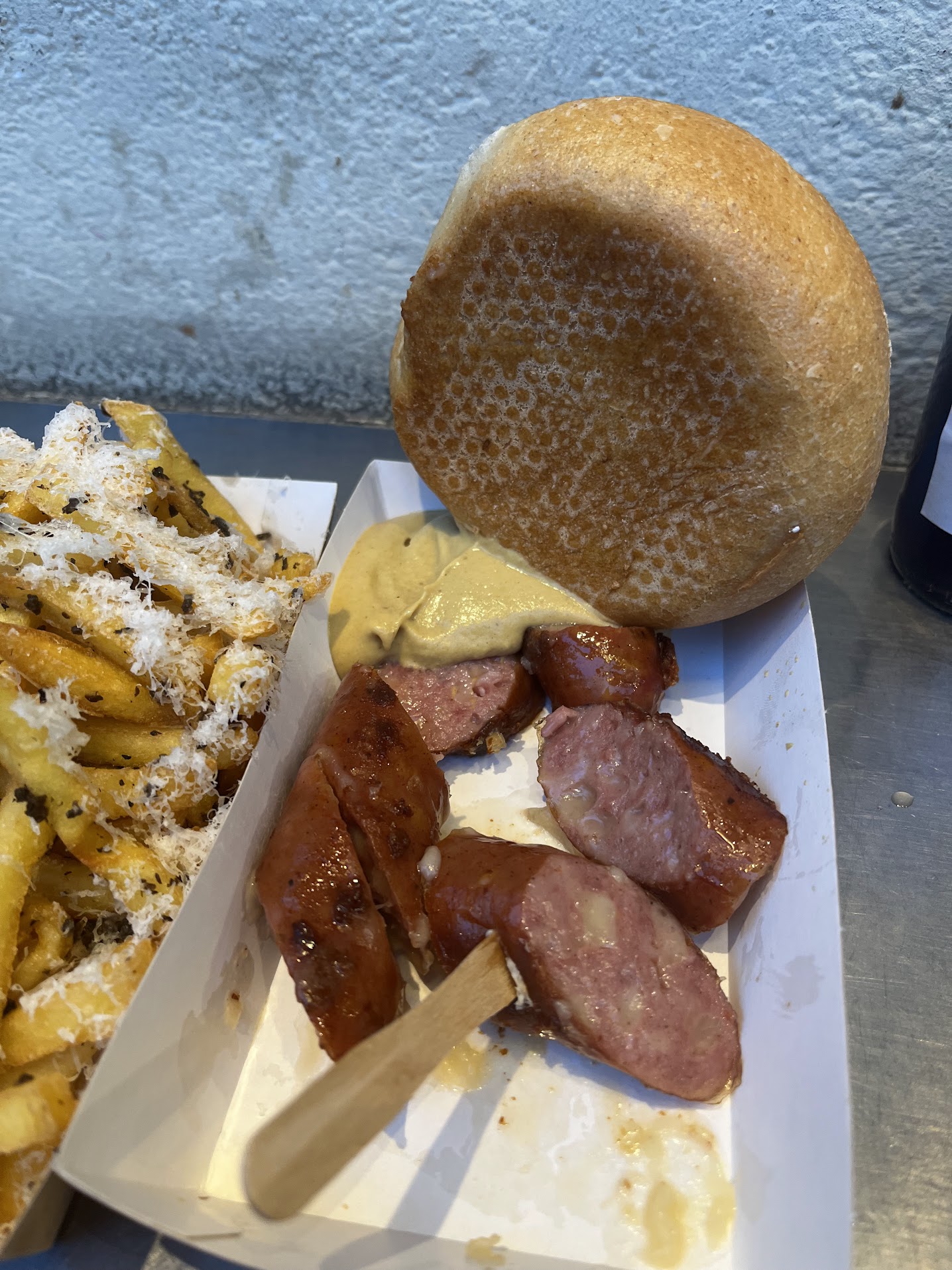 Una vez fuera iba siendo hora de ir volviendo hacia el apartamento, parando antes para comer y decidimos hacerlo atravesando tranquilamente el mercadillo del Teatro Nacional. No pudimos resistir la tentación y acabamos comprando un Kürtoscalacs, o lo que viene siendo un chimney cake o pastel chimenea, hecho a la brasa y con topping de pistacho, canela y azúcar. ¡Delicioso!