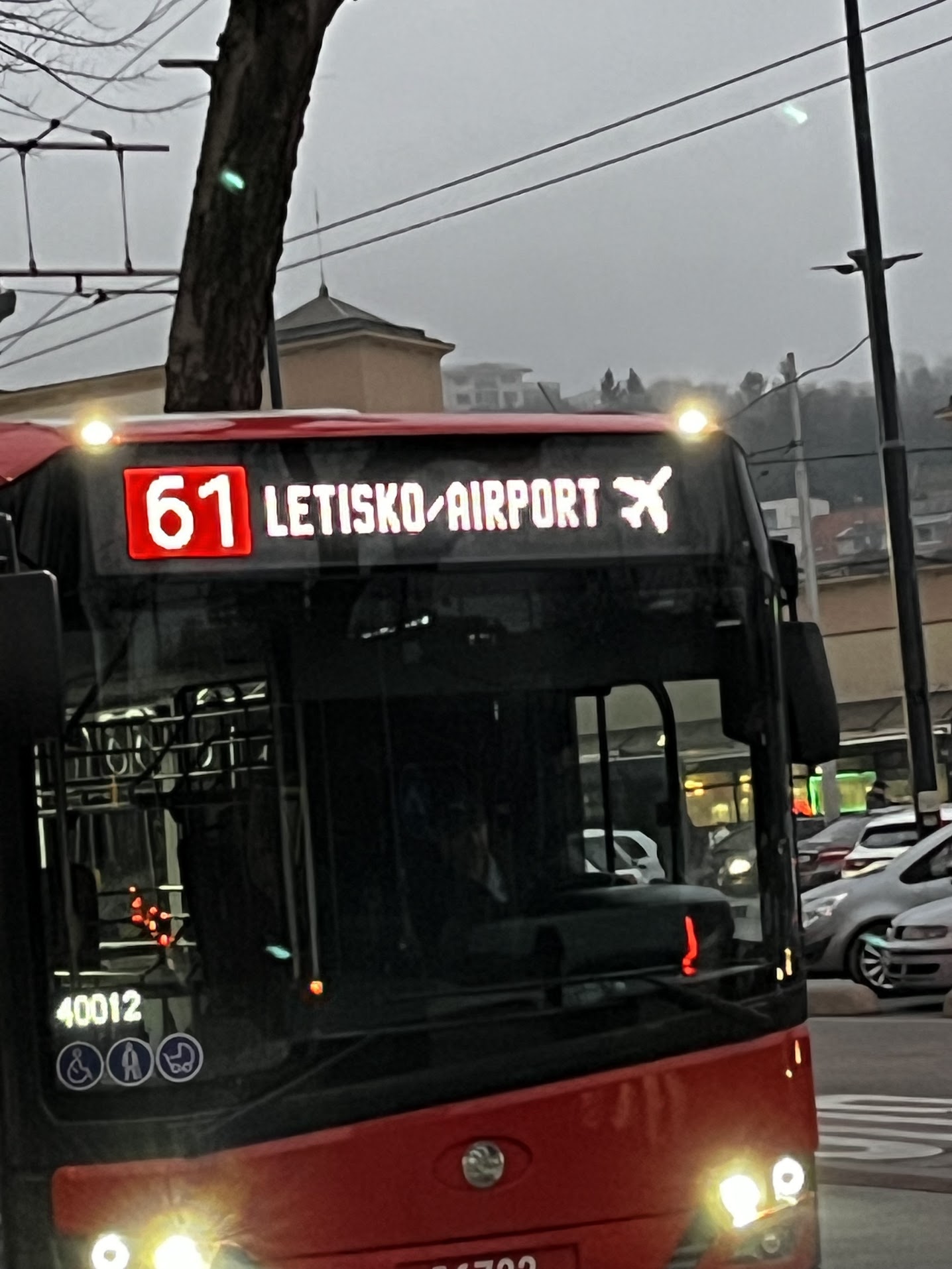Terminada la comida, subimos al apartamento, recogimos nuestras mochilas y ya en la calle tomamos el bus de la línea 44 hasta Karpatská y después el autobús número 61 hasta Letisko/Airport.